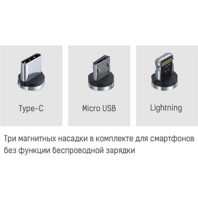 Не у всех моделей телефонов есть функция беспроводной зарядки, именно для таких телефонов в данном держателе предусмотрена магнитная кабельная зарядка, в комплекте у вас будут 3 маленьких магнитных штекера-заглушки (Type-C, Lightning, Micro-USB) и сам Магнитный кабель премиум качества.