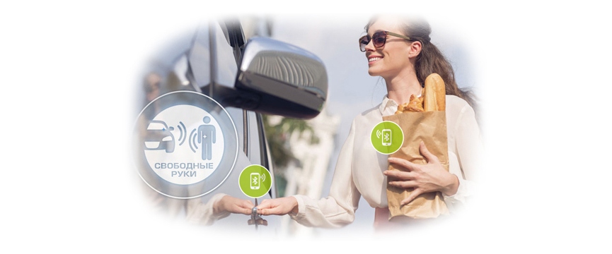 Технология Bluetooth Smart позволяет реализовать функции «Свободные руки», центральный замок автоматически открывается при приближении владельца к автомобилю