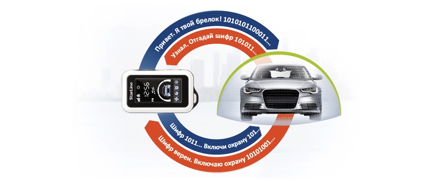Диалоговый код управления StarLine c индивидуальными ключами шифрования гарантирует надежную защиту от всех известных кодграбберов