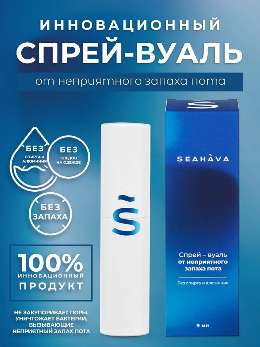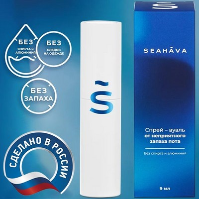 Невесомый спрей-дезодорант с уникальной запатентованной формулой, нежно обволакивает вашу кожу и предотвращает появление неприятного запаха пота даже в самых неожиданных ситуациях. Спрей станет незаменимым в вашем ритуале по уходу за собой, так он гипоаллергенен, не вызывает сухости и раздражения кожи, имеет полностью натуральный состав. Наслаждайтесь каждым своим движениям и будьте уверенным в себе вместе со спреем-вуалью от неприятного запаха от SEAHAVA.