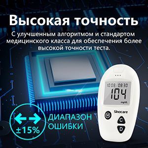 НЕТ необходимости в коде и тестовом растворе для калибровки перед использованием! Значение глюкозы в крови будет меняться из-за влияния ваших собственных эмоций, диеты, физических упражнений и других факторов, и результаты измерений глюкометров не могут быть использованы в качестве основы для постановки диагноза. Чтобы определить, являются ли результаты измерения глюкометра точными, обратитесь к результатам биохимического измерения крови в больнице.