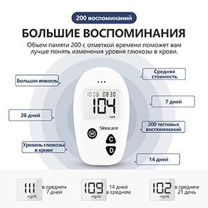 Объем памяти достигает 200, что позволяет отображать данные в среднем за 7 дней, 14 дней и 28 дней. Легкий доступ к историческим данным в любое время.