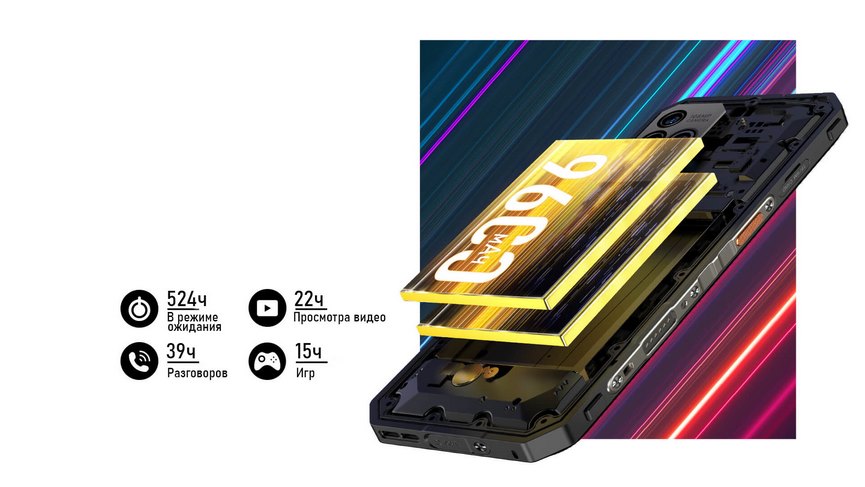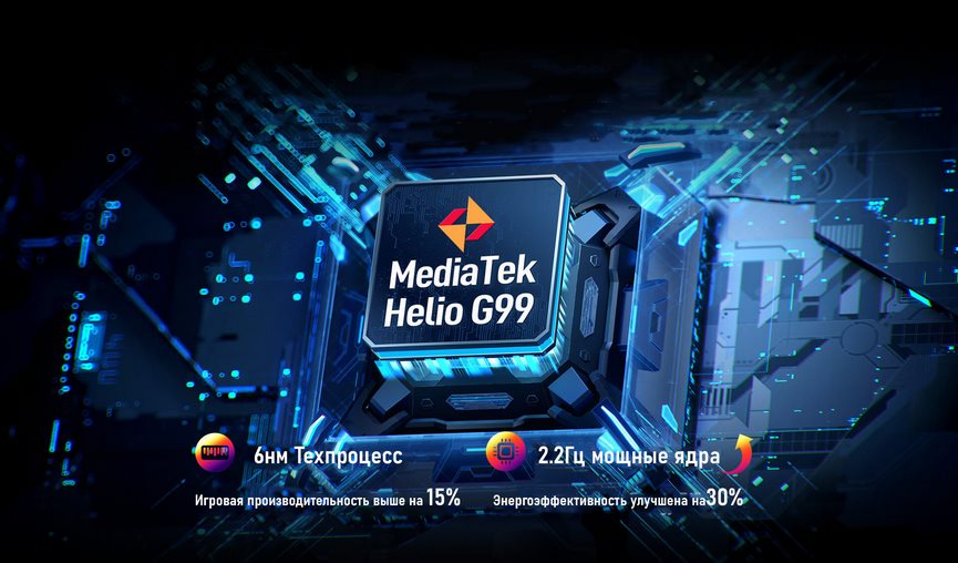 Процессор the MediaTek Helio G99 обеспечивает высочайшую производительность в защищённом корпусе. Ядра ARM Cortex-A76 с частотой до 2.2ГГц вкупе с ГПУ Mali-G57, позволяют обрабатывать изображения в реальном времени с меньшим потреблением. Передовой 6нм техпроцесс значительно продлевает время работы аккумулятора.