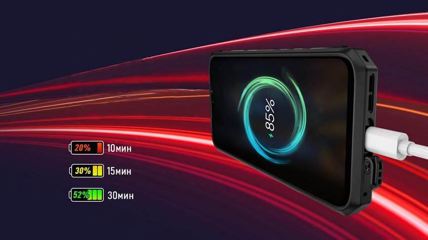 Моментально подзарядка смартфона благодаря поддержке быстрой 66Вт зарядки. Аккумулятор ёмкостью 9600мАч можно зарядить до 20% всего за 10 минут. В зарядном устройстве используется чип управления, который контролирует перегрев и перегрузку, для обеспечения безопасности.