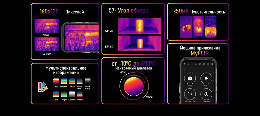 - Встроенный тепловизор FLIR в Ulefone Power Armor 19T позволяет провести простую, быструю диагностику проблем.