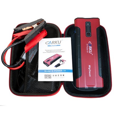 Carku E-Power-51 — это портативное пусковое устройство — jump starter (автономное пуско-зарядное устройство). По сути — универсальный внешний аккумулятор (power bank), который поможет вам: запустить двигатель автомобиля или мотоцикла при севшей штатной АКБ обеспечить питание и зарядку, телефонов, планшетов, фото- и видео-аппаратуры, MP3-плееров, навигаторов и т.п., а также 12-ти вольтовых автоприборов через адаптер прикуривателя.