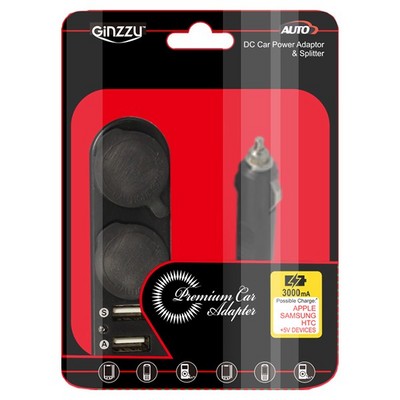Разветвитель Ginzzu GA-4615UB, АЗУ 5В/3.0A, 2xUSB, 2 розетки + удлинитель