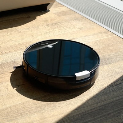 Пылесос имеет круглую форму, его высота всего 7,6 см. Он сможет забираться под мебель и убираться там, куда обычно не достать ни веником, ни обычным пылесосом.