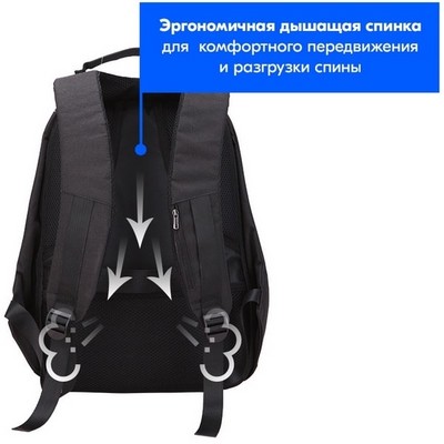 Удобные регулируемые лямки и плотная ортопедическая спинка не дают спине уставать даже после долгого дня на ногах и позволяют воздуху свободно циркулировать между спиной и рюкзаком.