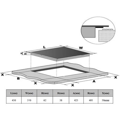 - Ширина 45 см, позволяет использовать компактность данной модели как ещё одно из её преимуществ, давая возможность разместить индукционную панель даже на самых малогабаритных кухнях.