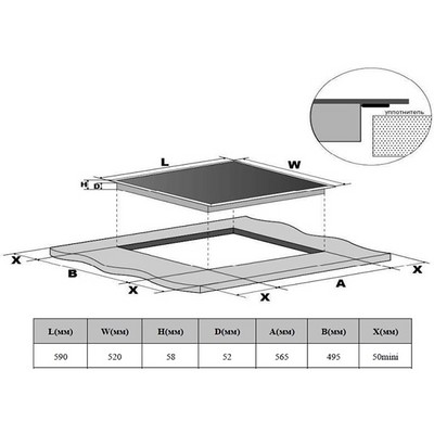 Безопасностьзащитное отключение конфорок, индикатор остаточного тепла, кнопка блокировки панели