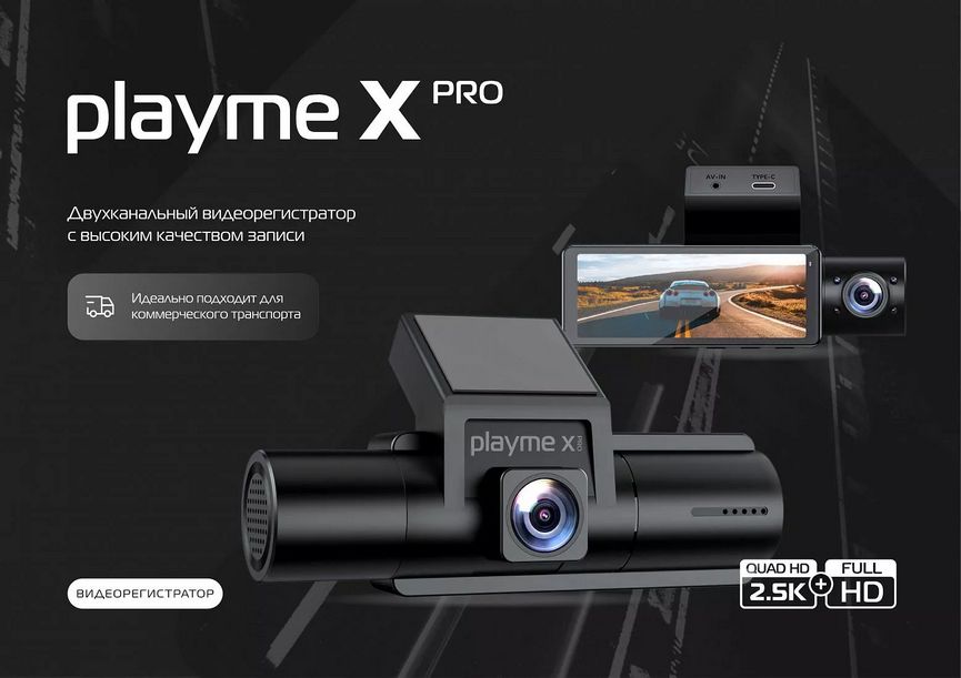 Playme X PRO — двухканальный видеорегистратор 2.5K+FullHD с поддержкой третьей FullHD камеры, ИК-подсветкой и Wi-Fi для полного контроля вокруг автомобиля.