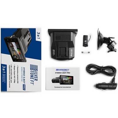 SilverStone F1 HYBRID S-BOT PRO – уникальное сигнатурное гибридное устройство совмещает в себе уникальный дизайн и полную функциональность сигнатурного радар-детектора премиум класса, видеорегистратора и GPS-информатора.