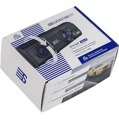 SilverStone F1 NTK-60F - двухканальное устройство, которое имеет возможность обрабатывать картинку сразу с двух камер. Основная камера, установленная на лобовом стекле, охватывает обзор всей дороги впереди. Вторая внутрисалонная камера фиксирует обстановку внутри ТС. Она вращается на 220° и оснащена инфракрасной подсветкой.