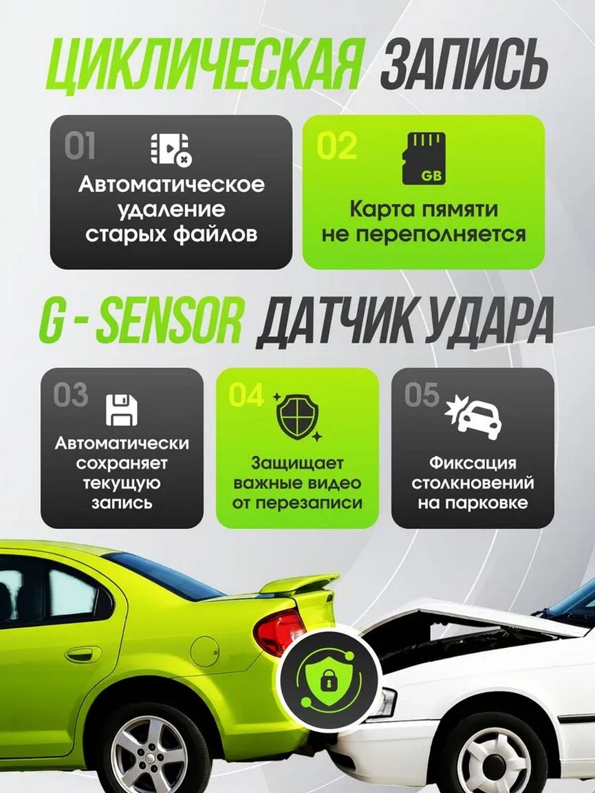 Встроенный G-сенсор реагирует на удары, резкие торможения и ускорения, автоматически защищая важные видеозаписи от удаления. Это особенно полезно при ДТП и спорных ситуациях на дороге.