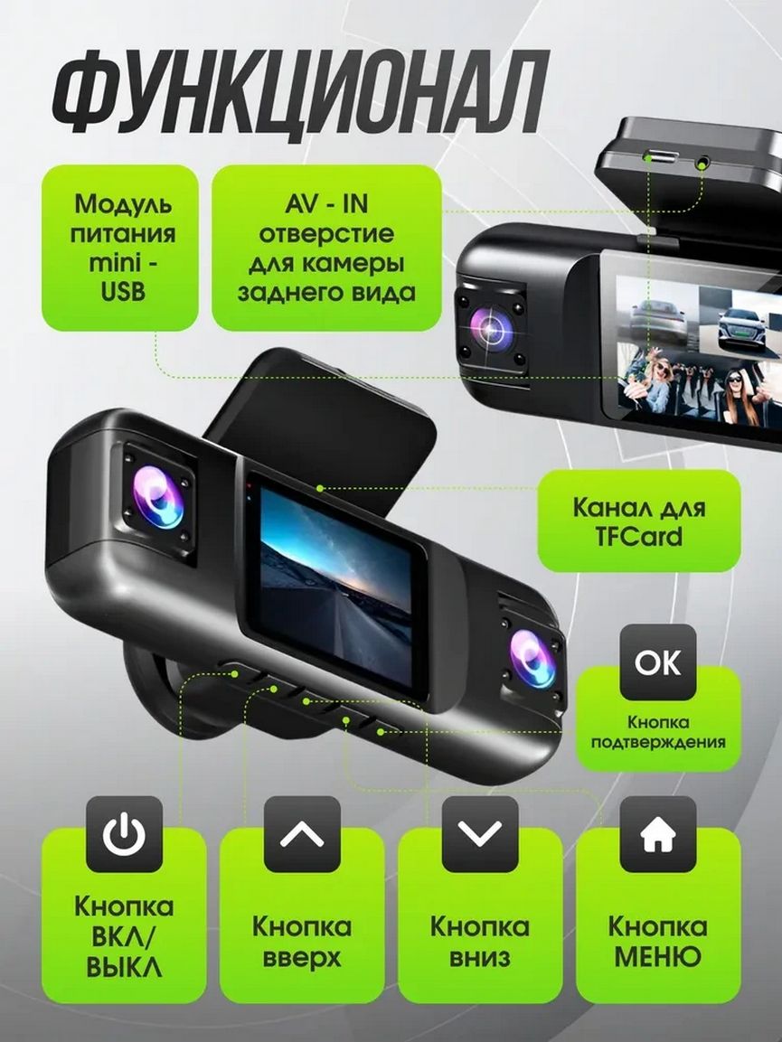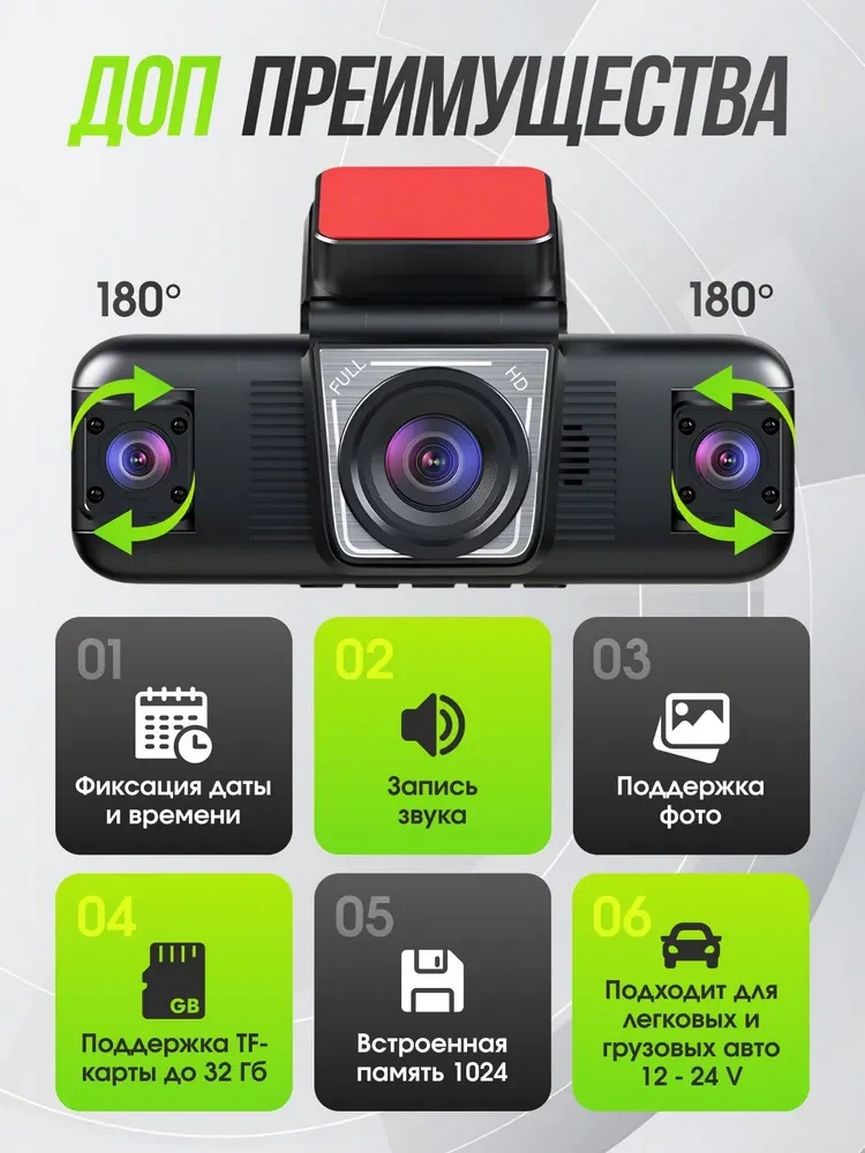 Такой формат особенно востребован для личного использования, такси и каршеринга, где важно фиксировать события спереди, по бокам, внутри салона и позади автомобиля — как в движении, так и на парковке.