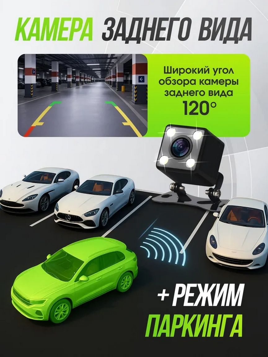 Камера заднего вида необходима для контроля ситуации задней части автомобиля, имеет 4 датчика света освещающих в темное время суток. Это особенно важно при парковке или маневрировании в трудных условиях. Видеорегистратор с камерой заднего вида станет незаменимым помощником в сложных ситуациях на дороге. Качество 1080 Full HD, угол обзора 120 градусов.
