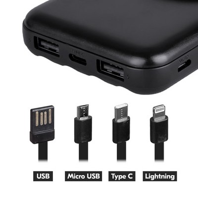 На задней стороне аккумулятора расположены 4 встроенных переходника, благодаря чему вы никогда не потеряете их в поездке.