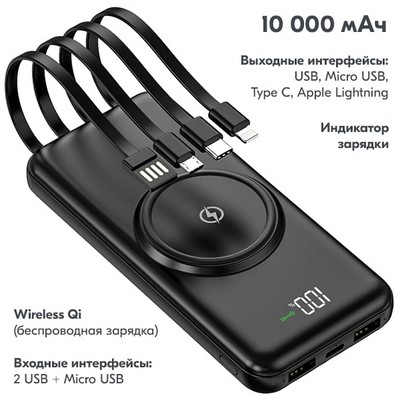 Универсальный внешний аккумулятор с функцией беспроводной зарядки Qi