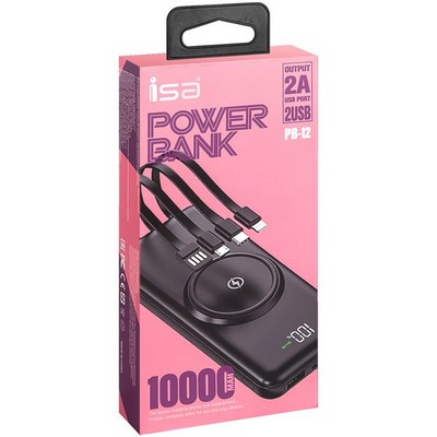 Внешний аккумулятор ISA PB-12 с функцией беспроводной зарядки 10000mAh, черный